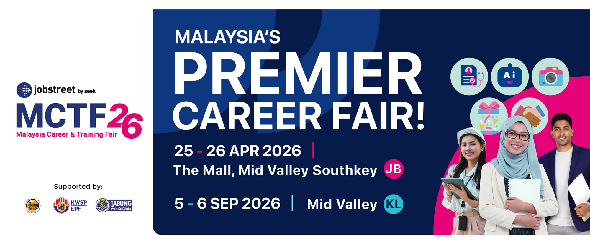 Looking for job opportunities in fields like Accounting, Banking, Human Resources, Marketing, Sales, Engineering, Technology, or Creative industries? The Malaysia Career and Training Fair (MCTF) offers the largest range of job openings across all these sectors and more.